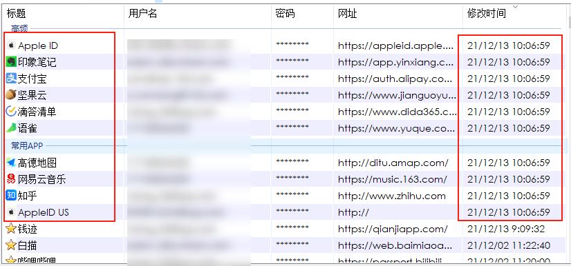 在使用webdav进行同步时,奇密会将密码项中,带有自定义图标的项目的历史记录时间,更改为你同步的时间,你每同步一次,最近修改时间也会更改一次,这属于一个重大BUG了。已反馈给开发者,但迄今为止,这个BUG依然未修复。